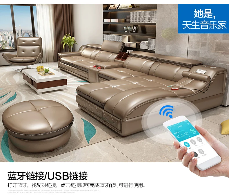 | Living Room Sofa set real genuine cow leather sofa recliner speaker massage bluetooth puff asiento muebles de sala canape cama |