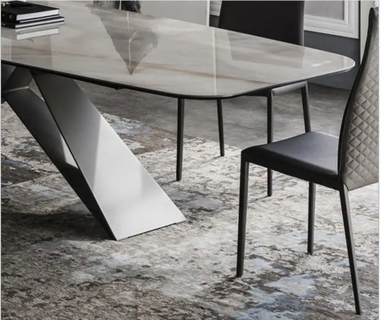 stainless steel Dining Room Set Home Furniture minimalist modern marble dining table and 6 chairs mesa de jantar muebles comedor