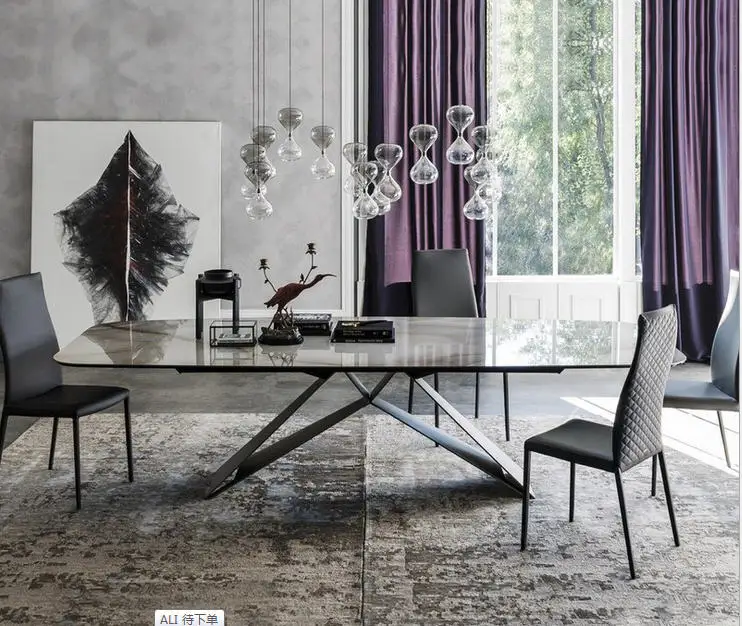 US $1,699.00Stainless steel Dining Room Set Home Furniture minimalist modern marble dining table and 6 chairs mesa de jantar muebles comedor