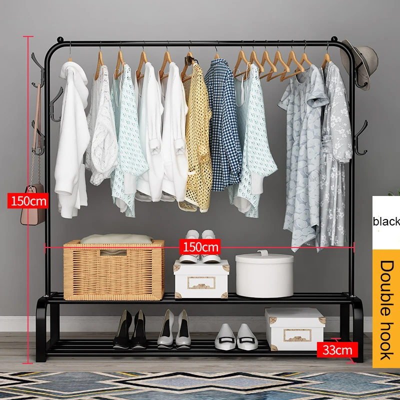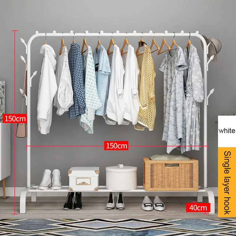 | 150cm Metal Coat Rack Indoor Simple Hanger Windproof Clothing Shelf Multifunction Floored Coat Stand Bedroom Clothes Hangers |