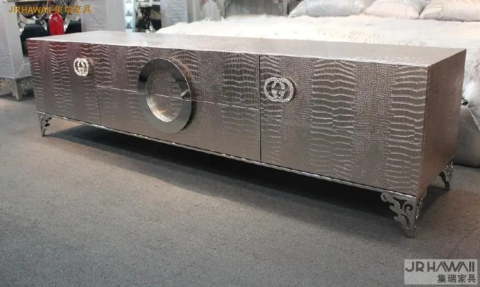 | living room home furniture TV stands modern style for leather surface and decorated small side carbinet stainless steel based |