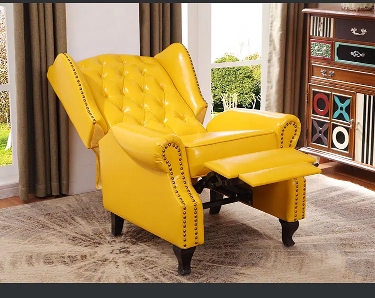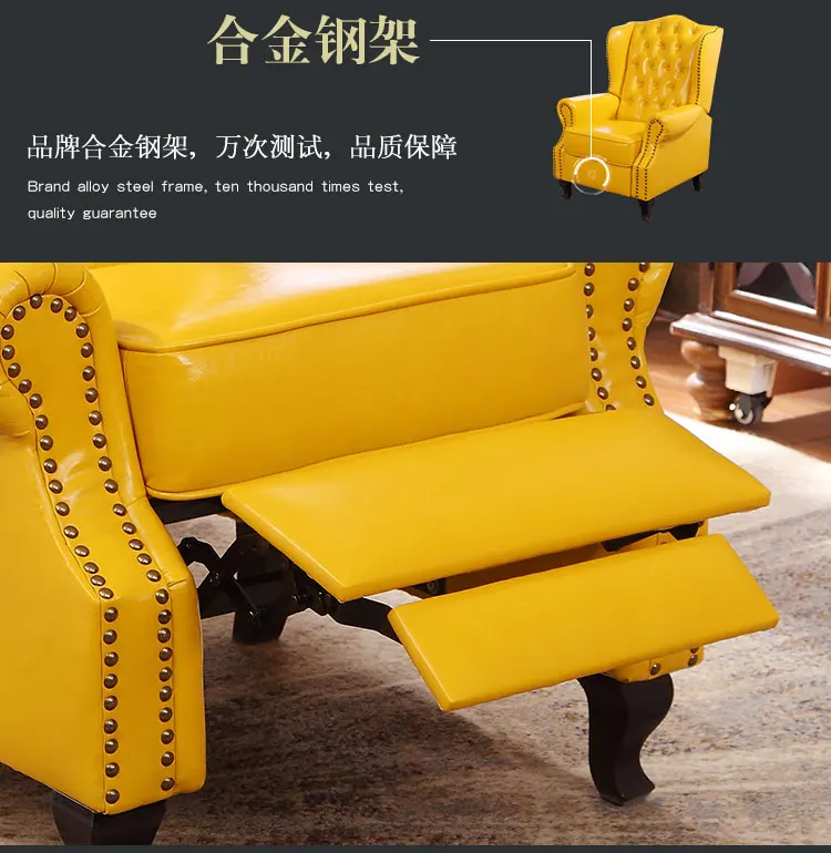 | oil wax genuine leather sofa living room chair recliner home furniture modern American Country leisure chair for leather buttons |