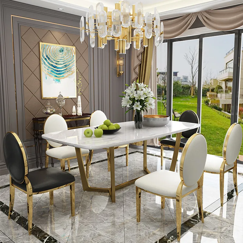 stainless steel Dining Room Set Home Furniture minimalist modern marble dining table and 6 chairs mesa de jantar muebles comedor