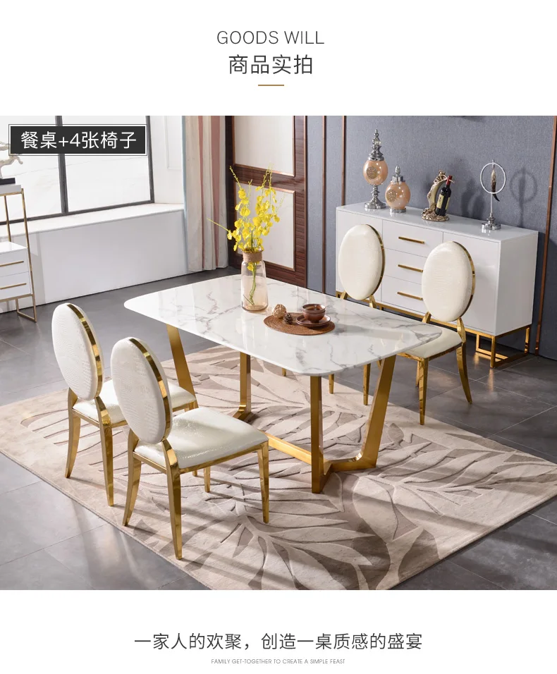 The best product you are looking for is "designer unique new stainless steel golden dining room set with marble table and 6 leather chairs mesa de jantar muebles comedor". This product is available and ready to be purchased. Get attractive discounts every time you shop in our store (aliexpress.com). Aliexpress also provides a coupon of $ 3 for the first buyer to shop there. don't forget to bookmark our store page so you can go shopping again anytime..