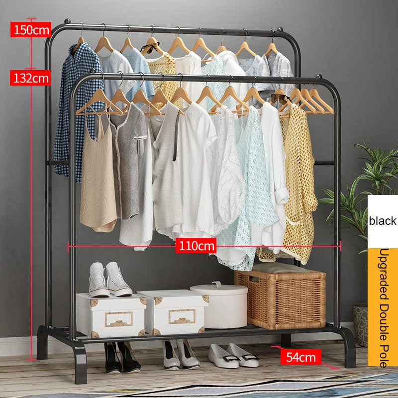 US $36.09Household bedroom floor standing coat rack clothing hanger storage metal hanger for clothes bearing weight 100kg white black