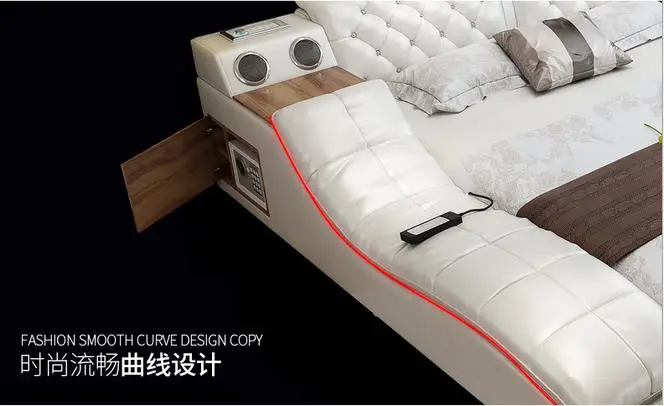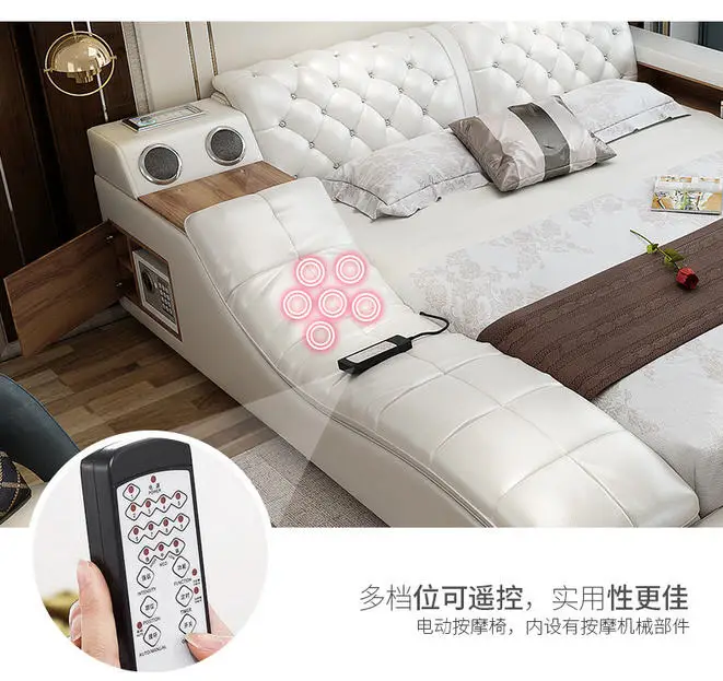 | Genuine leather bed frame Soft Beds massager storage safe speaker LED light Bedroom cama muebles de dormitorio camas quarto |